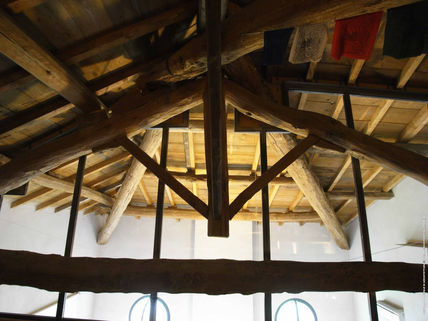 Abitare una cascina nel tentativo di sposare correttamente moderno e tradizione. Il linguaggio classico diventa il contenitore, l'involucro strutturale enfatizzato nei suoi elementi principali, i muri in mattoni a vista che proteggono dall'esterno e le capriate in legno che sostengono la copertura. Il linguaggio moderno viene appoggiato all'interno, definito e distaccato, con materiali nuovi e riconoscibili, la resina sui pavimenti per dare omogeneità alle superfici, l'intonaco bianco per i muri interni che non toccano mai il soffitto. I colori esplodono nelle stanze e nei bagni, creando scatole nelle scatole, che sbirciano al di fuori, di notte, oltre le grandi vetrate.